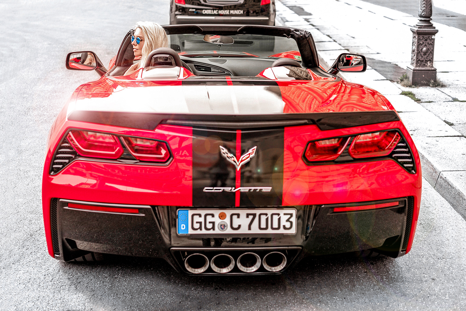 “Great,” I thought to myself when I was handed a huge, red Chevrolet Corvette for the test drive. Just great — now I’m the epitome of the flashy Munich cliche: the car is huge, red, loud, and impossible to miss. Broadly speaking, there are two (actually many more, but let’s stick to two) contrasting types of Munich residents: those you’ll find on Maximilianstraße, and those in Haidhausen. The Corvette would be a perfect fit for the first type. The second type rides bikes, carries tote bags instead of Chanel, and personally, I relate much more to the latter. But since I had the Corvette, I was curious to find out what it feels like to drive 466 hp.